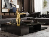 Фигурка из стекловолокна и полиэфирной смолы, отделка блестящая позолоченная, сферические акриловые плафоны с матовой опаловой отделкой.