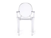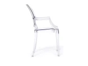 Стильное кресло MEDALION из коллекции Modern выполнено в стиле прозрачного стула Louis Ghost, созданного гениальным французским дизайнером Филиппом Старком. Изящная форма, овальная спинка и изогнутые ножки в сочетании с прозрачным пластиком подчеркивают уникальность и универсальность кресла. Классические очертания и визуальная воздушность позволяют ему вписаться в любой стиль интерьера: от классического до стиля бохо. Благодаря прозрачной поверхности, отражающей свет, и визуальной легкости кресло станет идеальным решением для небольших помещений. Удобная спинка и высокие подлокотники обеспечат комфорт для продолжительного отдыха. Кресло изготовлено из прочного бесцветного пластика, оно устойчиво к механическим повреждениям и нагрузкам, выдерживает большой вес. Эта удобная, легкая модель способна стать отличным украшением террасы загородного дома, интерьера городской квартиры или веранды кафе. Кресло подойдёт для гостиной, для кухни, для ресторана или для веранды. Кресло поставляется в собранном виде.