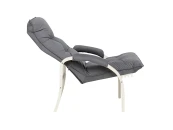 Мягкое кресло для отдыха дома и на даче Левада сделает комфортным интерьер комнаты модерн или хай-тек. Стильные кресла трансформеры из гнутоклееной коллекции мягкой мебели Leset имеют характерный силуэт, функциональны и компактны, поэтому популярны. Кресло-стул с подлокотниками и уютным сиденьем уместно в спальне, гостиной, прихожей, на балконе, в закрытой дачной беседке. У основания кресло раскладное оснащено механизмом гребенка, за счет чего одним движением спинка переключается в 4 положения. Этим модель напоминает шезлонг, но Левада Leset -полноценное интерьерное кресло для отдыха: современный дизайн, изящный деревянный каркас под итальянским лаком, велюровый чехол, наполнитель из эластичного пенополиуретана. Накладки на подлокотниках снимаются для чистки, приспинная подушка декорирована пуговицами. Эргономичное каркасное кресло раскладушка выдержит до 120 кг. Регулируемое кресло позволит расслабиться как на диване, это чудесный подарок в новую квартиру друзьям.