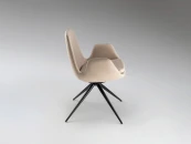 Вращающееся кресло из металла, матово-черное покрытие. Сиденье и спинка из фанеры и пены. Поворотный механизм с автоматическим возвратом. Обивка из 100% полиэстера в цвете «крем».