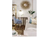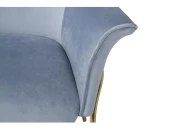 Кресло на металлических ножках станет изюминкой в вашем интерьере. Велюровая обивка отличается практичностью и простотой эксплуатации, кроме того, она придает помещению нотку роскоши и шика. Серо-голубое кресло напоминает нам облако и придает интерьеру легкости и невесомости. Этот стильный и сдержанный цвет позволит придать помещению оригинальности, а хозяину весомости в вопросах вкуса. Такое велюровое кресло удобно впишется в современный стиль. Дизайнерский вид металлических ножек делает этот предмет мебели изысканным дизайнерским украшением. Сиденье: ширина 42, глубина 44, высота 47см.