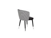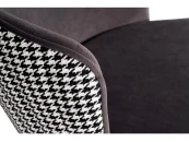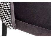 Оригинальный стул выполнен в комбинации приятного серого велюра на лицевой части и текстиля с орнаментом гусиная лапка" на тыльной части спинки. Оформление спинки - гладкая внутренняя поверхность и волнистая внешняя форма с вертикальной прострочкой. Габариты сиденья: ширина 47см, глубина 45см, высота от пола - 48см"