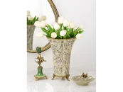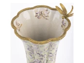 Ваза со стрекозой, выполненные из фарфора с бронзовыми элементами. Уникальное изделие ручной работы. При производстве этих художественных изделий из фарфора с бронзой используются вековые традиции китайских мастеров. Видимые трещинки (кракелюры) делаются по уникальной технологии, что придает более благородный вид старинного изделия.