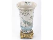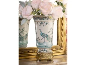 Ваза, выполненные из фарфора с бронзовыми элементами. Уникальное изделие ручной работы. При производстве этих художественных изделий из фарфора с бронзой используются вековые традиции китайских мастеров. Видимые трещинки (кракелюры) делаются по уникальной технологии, что придает более благородный вид старинного изделия.