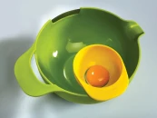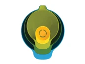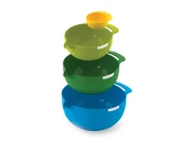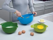 Набор, ориентированный на любителей выпечки. Каждая из трех мисок (объемом 3,8, 2,4 и 1,4 литра) оснащена специальным стальным краем на ободке для разбивания яиц и носиком для выливания готовой смеси. Также в комплект входит емкость для отделения яичных белков, которую можно прикрепить к краю любой из мисок. Все емкости компактно складываются одна в другую, занимая минимум места при хранении.