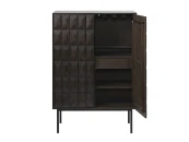 Фактурные фасады шкафа с уникальным рисунком добавят роскоши в любую комнату. Причудливая игра света передает мотивы середины XX века. Latina, покрытый лаком дымчатого цвета, изготовлен из комбинированного шпона дикого белого дуба и оборудован черными металлическими ножками. Секции поставляются в собранном виде.