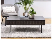 Фактурные фасады ящиков с уникальным рисунком добавят роскоши в интерьер гостиной. Причудливая игра света передает мотивы середины XX века.