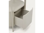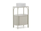 Этот предмет мебели для ванной комнаты сочетает в себе плавные формы и простые объёмы, создавая функциональное и уютное пространство. Эксклюзивный дизайн от Nahtrang для Kave Home исключает острые углы и способствует комфорту, обеспечивая плавное взаимодействие в повседневной жизни. Сочетание стальной конструкции и корпуса из лакированного водоотталкивающего МДФ обеспечивает прочность и устойчивость, а также элегантную отделку, которая гармонирует с любым стилем ванной комнаты. Выдвижной ящик с системой открывания от нажатия и плавного закрывания.