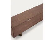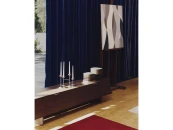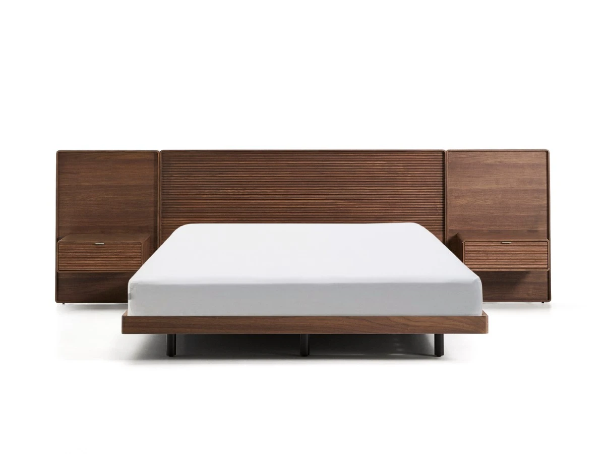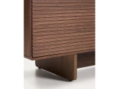 Norlen отдаёт дань уважения дизайну 1950х годов в современной интерпретации, сочетая минималистичные формы и винтажные детали. Слегка закруглённые углы и деревянное основание создают ностальгическую атмосферу, переосмысленную благодаря чистым линиям и современным пропорциям. Тёмный ореховый шпон, нанесённый методом вакуумной мембранной печати, идеально подходит к радиусам мебели, объединяя отделку и придавая глубину и индивидуальность каждому предмету. Он покрыт полиуретановым лаком, обеспечивающим устойчивость к износу и влаге.