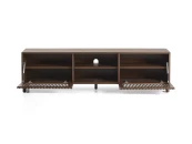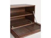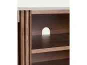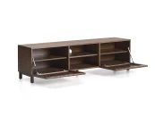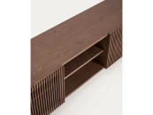 Тумба под телевизор из коллекции Beyla сочетает в себе изысканность ясеня и тщательно продуманный дизайн. Каркас выполнен из ясеневого шпона, а дверца и ножки – из массива дерева с элегантной отделкой под орех. Распашные дверцы украшены вертикальными планками, которые создают визуальный ритм и позволяют свету создавать тонкие контрасты на поверхности.