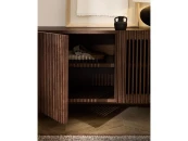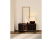 Полка для обуви из коллекции Beyla сочетает в себе изысканность ясеня и тщательно продуманный дизайн. Каркас выполнен из ясеневого шпона, а дверца и ножки – из массива дерева с элегантной отделкой цвета ореха. Дверца украшена вертикальными планками, которые создают визуальный ритм и позволяют свету создавать тонкие контрасты на поверхности. Петли с доводчиками обеспечивают бесшумное и удобное использование, а регулируемые ножки компенсируют неровности пола.