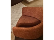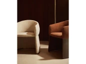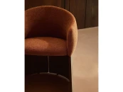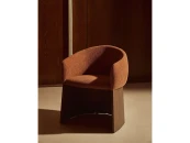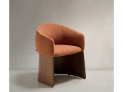 Этот стул отличается сбалансированным дизайном: широкое, удобное сиденье опирается на деревянное основание, покрытое ореховым шпоном. Матовое полиуретановое покрытие защищает поверхность и придает изделию теплоту. Древесина сертифицирована по системе 100% и соответствует модели ответственного лесоуправления. Обивка выполнена из мелкоструктурного шенилла: мягкого на ощупь, прочного и долговечного, изготовленного из 100% переработанного полиэстера от поставщика, сертифицированного по Глобальному стандарту переработки.