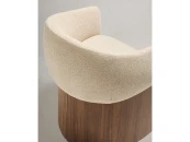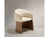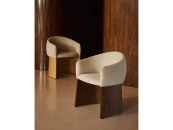 Этот стул отличается сбалансированным дизайном: широкое, удобное сиденье опирается на деревянное основание, покрытое ореховым шпоном. Матовое полиуретановое покрытие защищает поверхность и придает изделию теплоту. Древесина сертифицирована по системе 100% и соответствует модели ответственного лесоуправления. Обивка выполнена из мелкоструктурного шенилла: мягкого на ощупь, прочного и долговечного, изготовленного из 100% переработанного полиэстера от поставщика, сертифицированного по Глобальному стандарту переработки.