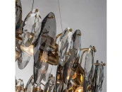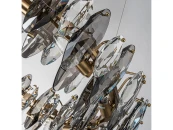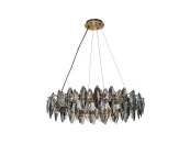 Подвесная кольцевая люстра диаметром 80 см, бронзовая арматура светильника скрыта за лепестками прозрачного и дымчато-серого хрусталя разного размера,