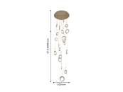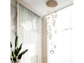 Потолочная люстра сочетает в себе объемные кольца цвета матовой латуни, которые светятся по периметру с помощью встроенной LED-ленты. Они закреплены п