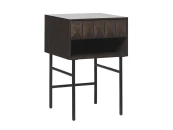 Фактурный фасад ящика с уникальным рисунком добавит роскоши в интерьер рабочего кабинета. Причудливая игра света передает мотивы середины XX века. Столик станет настоящим украшением интерьера спальни или рабочего кабинета. Latina, покрытый лаком дымчатого цвета, изготовлен из комбинированного шпона дикого белого дуба и оборудован черными металлическими ножками. Ящики поставляются в собранном виде.