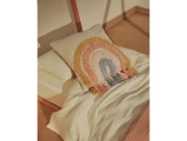 Эта коллекция полностью выполнена из хлопка, что обеспечивает ей исключительную мягкость и приятную на ощупь текстуру. Каждое изделие соткано вручную, что делает его уникальным, а небольшие вариации подчеркивают его эксклюзивность и особый характер. Дизайн украшен радужными рельефами и бахромой – декоративными деталями, которые добавят красок в любую детскую комнату. Эта коллекция, предназначенная для повседневной жизни, подходит для машинной стирки, что облегчает чистку и позволяет детям всегда наслаждаться комфортом.