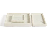 Эта коллекция из мрамора отличается прямыми формами и чёткими углами, а дизайн сочетает в себе элегантность и индивидуальность. Каждый предмет уникален, обладает уникальными оттенками и прожилками, отражающими подлинность камня, что делает его эксклюзивным декоративным элементом. Его дизайн украсит любое пространство, от ванной комнаты до гостиной или спальни. Функциональные и декоративные, эти изделия сочетают в себе прочность мрамора и вневременной дизайн, рассчитанный на долгий срок службы и подходящий для самых разных интерьеров.