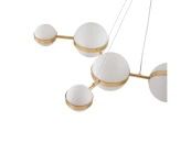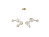 Подвесная люстра с каркасом в цвете матовое золото с восемью шаровидными плафонами разных размеров, LED-лампы