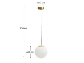 Brisia сочетает геометрию и элегантность в современном дизайне, отличающемся балансом материалов и форм. Металлический каркас с отделкой из матовой латуни добавляет изысканности, а сферический абажур из матового стекла смягчает свет, создавая обволакивающее и уютное освещение. Универсальный дизайн позволяет легко интегрировать светильник в различные пространства, добавляя индивидуальности и стиля. Светильник совместим с лампами E27 мощностью до 25 Вт (приобретаются отдельно). Он идеально подходит для тех, кто ищет функциональный светильник с изысканным и вневременным дизайном.