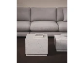Столы Sorein сочетают в себе прочность мрамора и изысканный геометрический дизайн, который придаёт индивидуальность любому помещению. Они изготовлены из цельных плит толщиной 15 мм, собранных в куб с безупречными линиями. Полая внутренняя часть облегчает вес и облегчает транспортировку, сохраняя при этом прочность, характерную для этого материала. Каждый стол уникален, имеет свои оттенки и прожилки, что делает его эксклюзивным предметом. В комплект входят пластиковые защитные накладки на основание для предотвращения царапин.