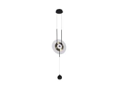 Подвес с каркасом в черном цвете, с двумя источниками света: первый источник - декоративный латунный диск с акриловым плафоном и встроенной лентой LED