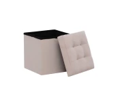 Пуф с ящиком для хранения объемом 40 л и обивкой из мебельной ткани велюр – идеальный элемент мебели для прихожей, детской комнаты или спальни. Квадратный мягкий пуфик Плуто разработан по требованиям комфорта, износостойкости и функциональности. Пуф в прихожую удобен: сидя на нем удобно переобуваться, внутри пуфа с ящиком можно хранить обувь и тапочки. Пуфики Плуто легко складываются, экономит пространство, складной пуфик легко перемещать, конструкция собирается за 10 секунд. Крышка пуфа декорирована стяжкой. Если у вас маленькая прихожая, мебель Leset выручит! Пуфы Плуто имеют прочный деревянный каркас, выдерживают до 100 кг. Для обтяжки пуфика для прихожей мы используем обивку ткань велюр, приятна тактильно и устойчива к износу. Пуфик с ящиком для хранения доступен в 5-и цветах. Модель универсальна, отлично впишется в любой интерьер, уместна как пуфик банкетка в спальню. Нужен пуф круглый на опорах мебельных из дерева? Смотрите другие пуфы и банкетки в нашем каталоге.