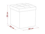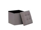 Пуф с ящиком для хранения объемом 40 л и обивкой из мебельной ткани велюр – идеальный элемент мебели для прихожей, детской комнаты или спальни. Квадратный мягкий пуфик Плуто разработан по требованиям комфорта, износостойкости и функциональности. Пуф в прихожую удобен: сидя на нем удобно переобуваться, внутри пуфа с ящиком можно хранить обувь и тапочки. Пуфики Плуто легко складываются, экономит пространство, складной пуфик легко перемещать, конструкция собирается за 10 секунд. Крышка пуфа декорирована стяжкой. Если у вас маленькая прихожая, мебель Leset выручит! Пуфы Плуто имеют прочный деревянный каркас, выдерживают до 100 кг. Для обтяжки пуфика для прихожей мы используем обивку ткань велюр, приятна тактильно и устойчива к износу. Пуфик с ящиком для хранения доступен в 5-и цветах. Модель универсальна, отлично впишется в любой интерьер, уместна как пуфик банкетка в спальню. Нужен пуф круглый на опорах мебельных из дерева? Смотрите другие пуфы и банкетки в нашем каталоге.