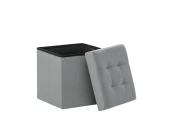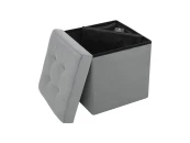 Пуф с ящиком для хранения объемом 40 л и обивкой из мебельной ткани велюр – идеальный элемент мебели для прихожей, детской комнаты или спальни. Квадратный мягкий пуфик Плуто разработан по требованиям комфорта, износостойкости и функциональности. Пуф в прихожую удобен: сидя на нем удобно переобуваться, внутри пуфа с ящиком можно хранить обувь и тапочки. Пуфики Плуто легко складываются, экономит пространство, складной пуфик легко перемещать, конструкция собирается за 10 секунд. Крышка пуфа декорирована стяжкой. Если у вас маленькая прихожая, мебель Leset выручит! Пуфы Плуто имеют прочный деревянный каркас, выдерживают до 100 кг. Для обтяжки пуфика для прихожей мы используем обивку ткань велюр, приятна тактильно и устойчива к износу. Пуфик с ящиком для хранения доступен в 5-и цветах. Модель универсальна, отлично впишется в любой интерьер, уместна как пуфик банкетка в спальню. Нужен пуф круглый на опорах мебельных из дерева? Смотрите другие пуфы и банкетки в нашем каталоге.
