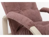 Мягкое кресло для отдыха дома и на даче Левада сделает комфортным интерьер комнаты модерн или хай-тек. Стильные кресла трансформеры из гнутоклееной коллекции мягкой мебели Leset имеют характерный силуэт, функциональны и компактны, поэтому популярны. Кресло-стул с подлокотниками и уютным сиденьем уместно в спальне, гостиной, прихожей, на балконе, в закрытой дачной беседке. У основания кресло раскладное оснащено механизмом гребенка, за счет чего одним движением спинка переключается в 4 положения. Этим модель напоминает шезлонг, но Левада Leset -полноценное интерьерное кресло для отдыха: современный дизайн, изящный деревянный каркас под итальянским лаком, велюровый чехол, наполнитель из эластичного пенополиуретана. Накладки на подлокотниках снимаются для чистки, приспинная подушка декорирована пуговицами. Эргономичное каркасное кресло раскладушка выдержит до 120 кг. Регулируемое кресло позволит расслабиться как на диване, это чудесный подарок в новую квартиру друзьям.