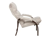 Мягкое кресло для отдыха дома и на даче Левада сделает комфортным интерьер комнаты модерн или хай-тек. Стильные кресла трансформеры из гнутоклееной коллекции мягкой мебели Leset имеют характерный силуэт, функциональны и компактны, поэтому популярны. Кресло-стул с подлокотниками и уютным сиденьем уместно в спальне, гостиной, прихожей, на балконе, в закрытой дачной беседке. У основания кресло раскладное оснащено механизмом гребенка, за счет чего одним движением спинка переключается в 4 положения. Этим модель напоминает шезлонг, но Левада Leset -полноценное интерьерное кресло для отдыха: современный дизайн, изящный деревянный каркас под итальянским лаком, велюровый чехол, наполнитель из эластичного пенополиуретана. Накладки на подлокотниках снимаются для чистки, приспинная подушка декорирована пуговицами. Эргономичное каркасное кресло раскладушка выдержит до 120 кг. Регулируемое кресло позволит расслабиться как на диване, это чудесный подарок в новую квартиру друзьям.