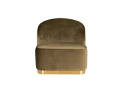 Просторное велюровое кресло без подлокотников с сиденьем размера XXL выгодно отличается от своих собратьев: это практически одноместный диванчик, который украсит вашу гостиную или спальную комнату. Золотая матовая опора подчеркивает красоту темно-оливкового велюра и приятную округлость форм. Ваш дом станет еще уютней и теплее с этим прекрасным креслом.