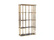 Великолепный стеллаж в классическом стиле из полированной стали золотистого цвета, выполненный по эскизам ведущих голландских дизайнеров, украсит элегантный кабинет или гостиную. На четырех полках из черного закаленного стекла можно разместить статуэтки и фоторамки, наградные кубки и отдельные книжные тома. Стильный и современный стеллаж будет одинаково хорошо смотреться как в классическом интерьере, так и в интерьере ар-деко или фьюжн.