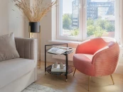 Кресло велюр коралловый 77x77x77см мет.ножки, обивка - велюр, каркас - дерево, ножки - металл