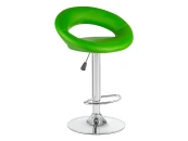 Стул барный, цвет сиденья зеленый, цвет основания хром. Материал обивки экокожа. Материал каркаса металл. Материал основания металл. Тип основания диск. Вращение сиденья да. Форма сиденья круглое.