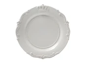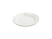 Тарелка с изысканной окантовкой изготовлена из гладкой керамики, покрытой белой глазурью. Изделие предназначено как для сервировки, так и для демонстрации любимых блюд.