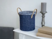 Корзина TODI круглая плетеная, текстильная, с ручкой, синяя, диаметр 23 см, высота 23 см. Универсальная корзина для хранения вещей занимает минимум места и идеально вписывается в любой интерьер, позволяет эффективно организовать пространство в вашем доме. Корзина имеет практичные ручки для перемещения. Данную модель можно использовать для хранения разных домашних принадлежностей.