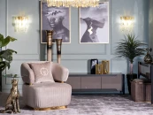 Ваза стекл.бежевая на металл. основании d19x81см, стекло, металл