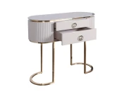Роскошная консоль с ящиками из коллекции LUCHIANO станет красивым дополнением к интерьеру спальни или гостиной. Для придания гламура помещению, изделие можно использовать для размещения на нем глянцевых журналов и декоративных украшений. На консоль с мраморной столешницей можно установить вазу с живыми цветами или комнатное растение. Выдвижные ящики позволят спрятать личные вещи или документы от посторонних глаз. СВЕТЛО-СЕРЫЙ цвет корпуса гармонирует с золотистыми элементами. Эффектная дизайнерская консоль представлена на сайте вместе с комодом, тумбой под телевизор и прикроватной тумбочкой из этой же серии. Цвет изделия может незначительно отличаться от изображений на сайте в зависимости от цветопередачи вашего устройства.