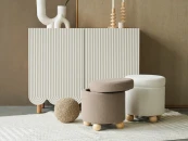 Kit — круглый каркасный пуф на деревянных ножках-шариках. Архитектура предмета базируется на лаконичном дизайне, который подходит для большинства актуальных интерьеров. Модель словно «левитирует» над полом, поддерживая ощущение невесомости. Плавные формы, закругленные края — безопасно, эргономично, безмятежно.