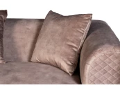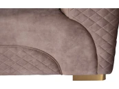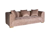 Невероятно красивый трехместный диван станет центром уюта и покоя в гостиной или столовой. Мягкое сиденье, широкая спинка, переходящая в подлокотники, и три декоративные подушки радуют глаз и душу. Вся обивка с наружной стороны и оригинальная вставка в цокольной части дивана прострочены небольшими ромбами. Широкие ножки из сатинированной стали золотистого цвета гармонируют с восхитительным бежевым велюром превосходного качества. В каждом элементе отделки чувствуется изысканный дизайнерский стиль; композиция дивана пленяет гармонией и законченностью. На нашем сайте вы найдете журнальные и кофейные столы, светильники и зеркала с отделкой под матовое золото, чтобы дополнить меблировку красивыми предметами интерьера в стилистике ар-деко.