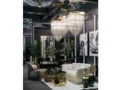 Люстра потолочная, латунь 56x56xh.90,5см, стекло, металл