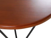 Материал столешницы - массив дерева в дубовом шпоне цвета орех, материал ножек - металл с порошковым покрытием черного цвета. На опорах установлены три наконечника в форме шаров из массива дерева в цвете орех.