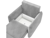 В конструкции кресла используются материалы из натурального дерева, которые гарантируют экологичность и прочность каркаса. Под сиденьем предусмотрен бельевой ящик, в который можно убрать постельное белье.