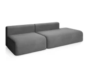 Дизайн дивана выполнен в современном стиле, который подойдет для интерьеров в стиле джапанди и минимализм. Округлые формы и широкие подлокотники создают ощущение уюта и комфорта. Вытянутые в горизонталь летящие силуэты дивана и асимметрия придают ему современное обличие.