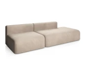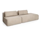 Дизайн дивана выполнен в современном стиле, который подойдет для интерьеров в стиле джапанди и минимализм. Округлые формы и широкие подлокотники создают ощущение уюта и комфорта. Вытянутые в горизонталь летящие силуэты дивана и асимметрия придают ему современное обличие.