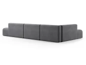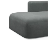 Дизайн дивана выполнен в современном стиле, который подойдет для интерьеров в стиле джапанди и минимализм. Округлые формы и широкие подлокотники создают ощущение уюта и комфорта. Вытянутые в горизонталь летящие силуэты дивана и асимметрия придают ему современное обличие.