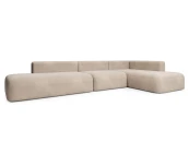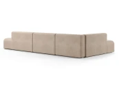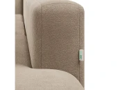 Дизайн дивана выполнен в современном стиле, который подойдет для интерьеров в стиле джапанди и минимализм. Округлые формы и широкие подлокотники создают ощущение уюта и комфорта. Вытянутые в горизонталь летящие силуэты дивана и асимметрия придают ему современное обличие.
