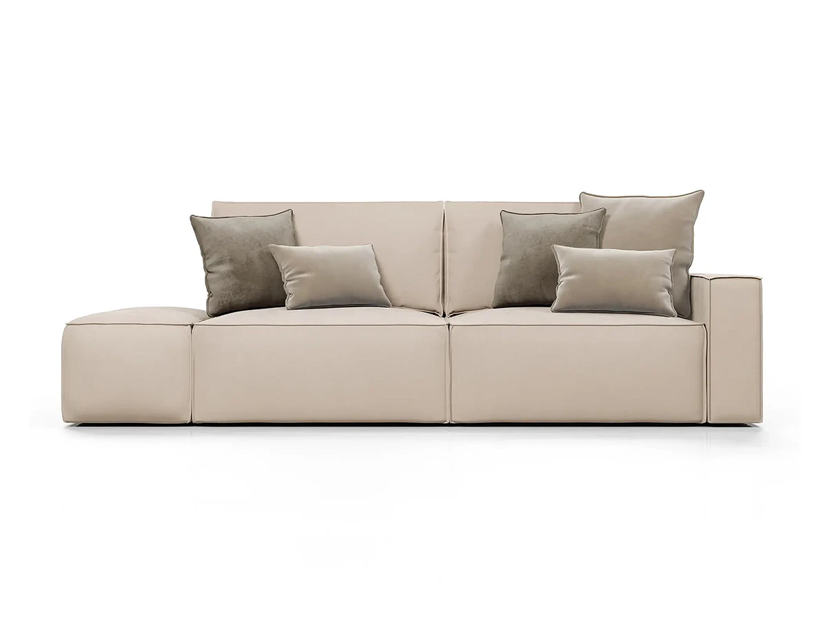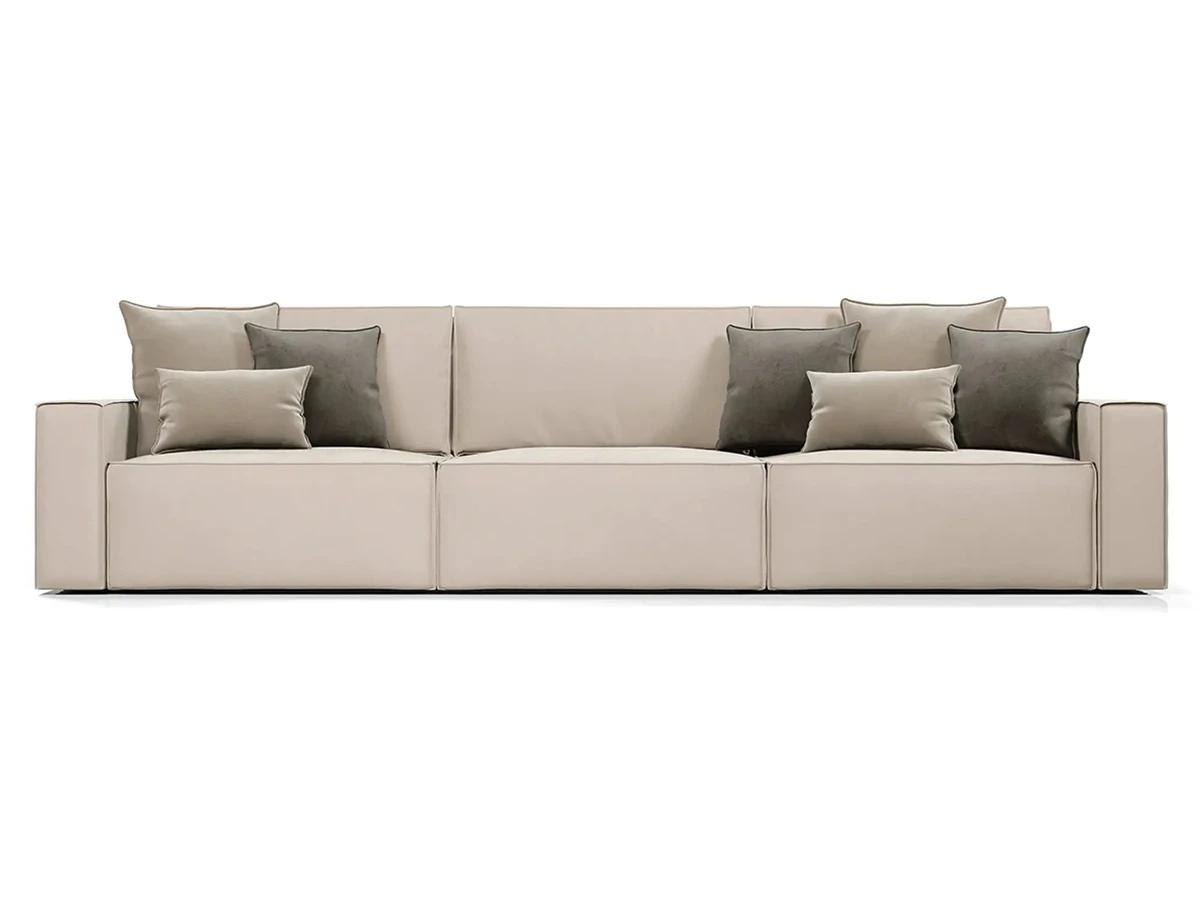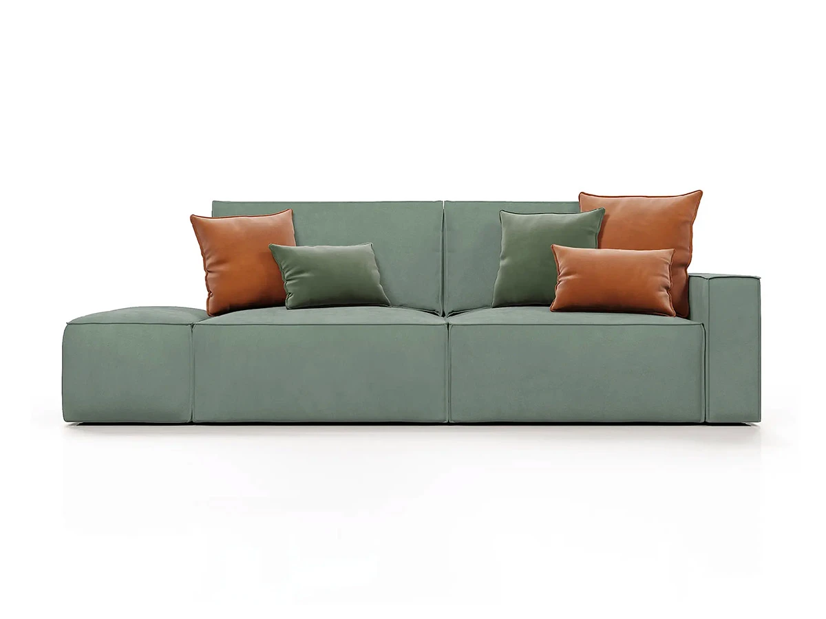 Обивка дивана - мягкий бархатистый премиальный велюр. Тонкая динамика узора обивки создаёт в пространстве ощущение лёгкости и движения. Технология Waterproof делает ткань устойчивой к влаге, и благодаря этому обивка долговечна и проста в уходе.