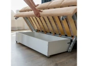 Лёгкая трансформация. Чтобы сложить кровать, достаточно поднять основание до щелчка и задвинуть механизм. Раскладывание происходит одним лёгким движением. Лёгкость обеспечивают прорезиненные колёсики и специальный механизм аккордеонного типа.
